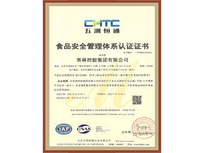• 食品安全管理體系認證證書