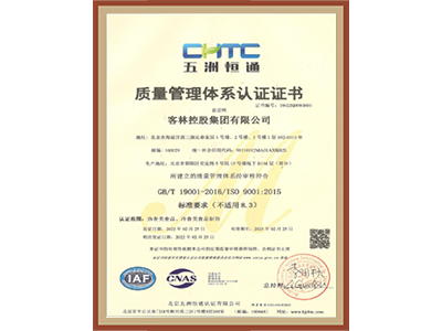 • 質量管理體系認證證書